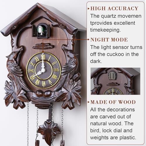 Kendal Cuckoo Clock Large Vintage Wall Clock Handcrafted Wood Cuckoo Clock House Home Decor with Singing Bird & Birds Live in Tree Houses Decoration MX222