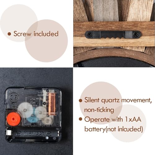 Rustic Wall Decor Clock: This eye-catching and original clock goes well with any decor style, including country, rustic, farmhouse, modern, boho and others. It can be used for a long time in the bedroom, living room, kitchen, bathroom, dining room, office, and more