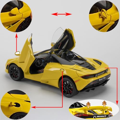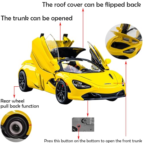 McLaren 720s Toy Cars Roadster Model 1/24 Yellow Alloy Collectibles Die-cast Vehicles with Sound and Light