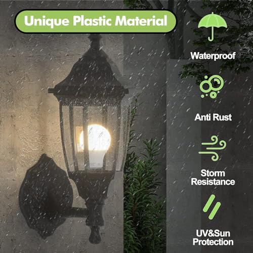 EMART Outdoor Porch Sconce LED Exterior Wall Light Fixtures, Special Handling Anti-Corrosion Plastic Material, Waterproof Security Lamp for Garage, Front Door, House – 2 Pack, Black (Bulb Included)