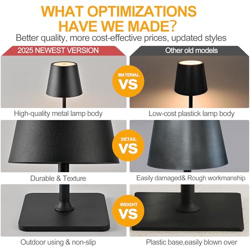 【HIGH QUALITY METAL TABLE LAMP &WATERPROOF/WEATHERPROOF】:The small table lamp battery operated made of metal lamp body, after matte coating treatment, anti-scratch and anti-corrosion; of which the gold color using electroplating treatment, smooth and texture. Acrylic lampshade, good light transmission and not blinding. This outdoor rechargeable table lamp has been made high quality layer treatment, not afraid of rain erosion, to maintain a timeless elegance.