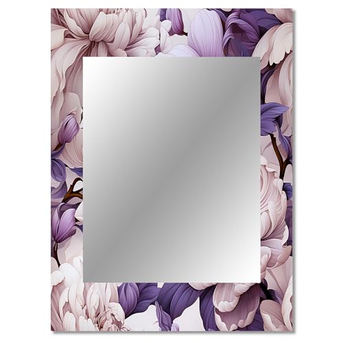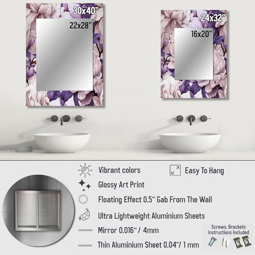 Cool Grey Blue Floral Sleekness Floral Wall Mirror, Printed White Wall Mirror, Traditional Bathroom Wall Mirror, Decorative Floral Mirror – 30×40 Inches