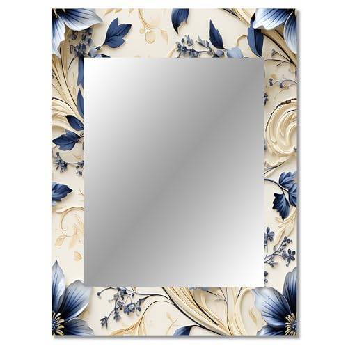Victorian Brocade Rusticity Floral Wall Mirror, Printed Brown Wall Mirror, Traditional Bathroom Wall Mirror, Decorative Floral Mirror – 30×40 Inches