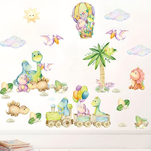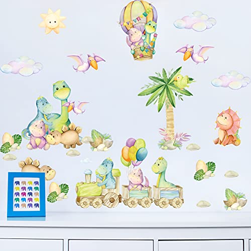 Watercolor Dinosaur Wall Decals Dino Train Hot Air Balloon Wall Stickers for Kids Bedroom Baby Nursery Wall Decor