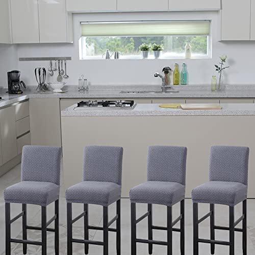 HFCNMY Bar Stool Covers,2 Pack Stretch Bar Stool Covers with Backs Jacquard Bar Stool Chair Covers Barstool Covers Slipcovers with Back Pub Counter Stool Chair Covers with Elastic Bands Gray