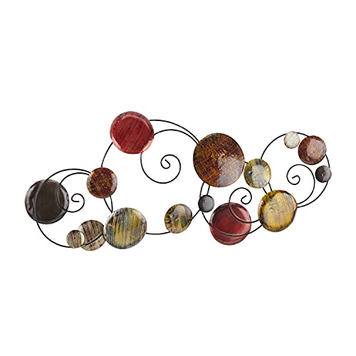 Striking and unique, this metal wall decoration for living room will make a statement in any home. This item ships in 1 carton. Can be hung vertically using the keyholes; nails and screws not included. Suitable for indoor use only. This item ships fully assembled in one piece. This is a single multi colored wall sculptures. Contemporary style.