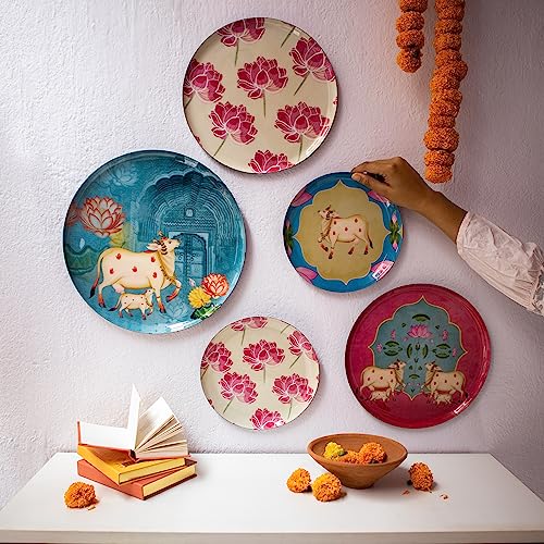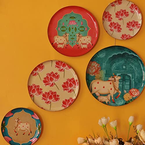 RITUALISTIC Pastel Pichwai Iron Wall Plates- Set of 5 (Multicolor) | Wall Arts for Home Decoration, Living Room, Bedroom, Office Decor | Aesthetic Room Decor Items | Wall Hanging Showpiece