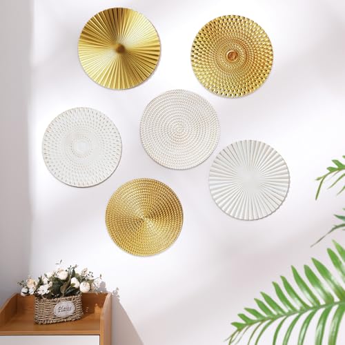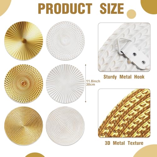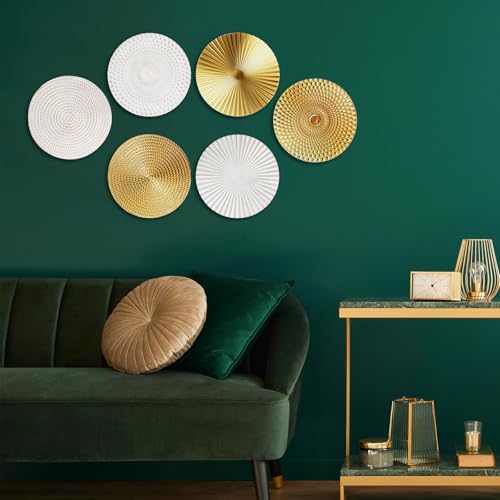Set Consists of 6 Decorative Plates: this Wall Metal Decor set is comprised of 6 wall decors, enabling you to create a harmonious arrangement or scatter them across various spaces; With a split between 3 gold and 3 white plates, you have the versatility to change the look according to your mood or season